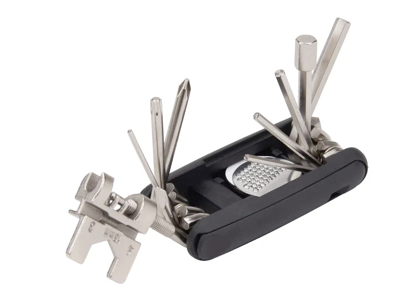 Колоссальный функционал (16 в 1): Набор объединяет в себе ключи для настройки механики, инструменты для ремонта трансмиссии и полноценный аптечный набор для камер.